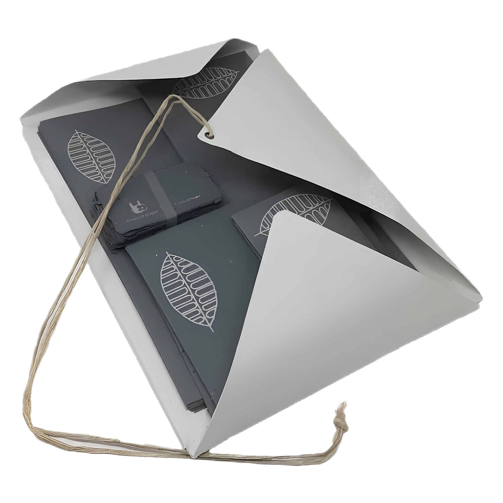 Our Beautiful handmade stationery file set, feature a simple, yet charming stationery set that is perfect for you. The set is handcrafted using paper made from cotton rags, so you can enjoy an up cycled and recycled stationery set. A minimally designed set that comes with a lovely off-white autumn leaf print. As each visiting card, envelope, greeting card, thank you card, and letterhead is crafted using a traditional hand pressed method.